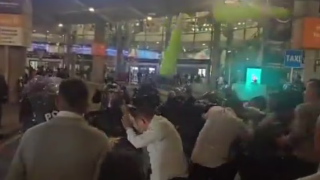 La antesala de lo que se espera para mañana fue una noche de furia en El Dorado. Lo que comenzó como un plantón en la plataforma No. 1 escaló rápidamente a enfrentamientos abiertos entre taxistas y la Unidad de Diálogo y Mantenimiento del Orden (UNDMO),,. En medio de detonaciones y nubes de gas, se registraron imágenes de manifestantes atacando con palos a la fuerza pública ante la mirada atónita de cientos de viajeros,.