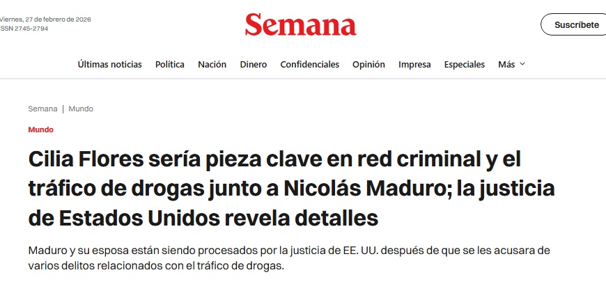 Link para el enlace de semana.com: Cilia Flores sería pieza clave en red criminal y el tráfico de drogas junto a Nicolás Maduro; la justicia de Estados Unidos revela detalles