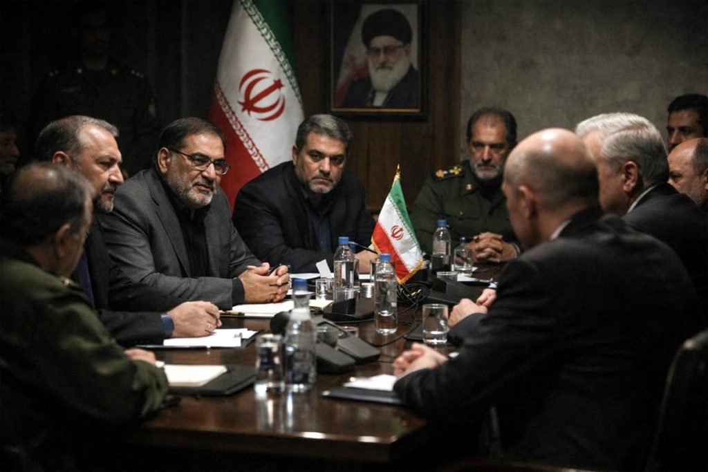 Funcionarios iraníes durante una reunión diplomática en el contexto de negociaciones por el fin del conflicto en Medio Oriente. Imagen generada con Inteligencia Artificial –