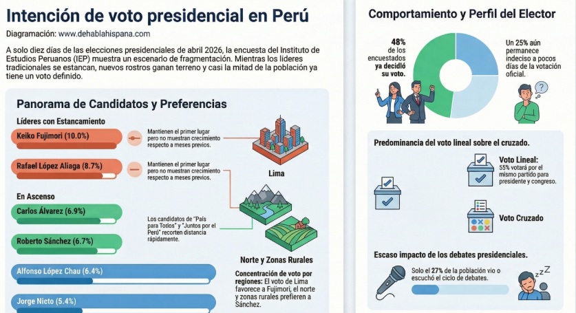 Perú: El «techo de cristal» de los favoritos contra un ascenso silencioso a 9 días de las presidenciales