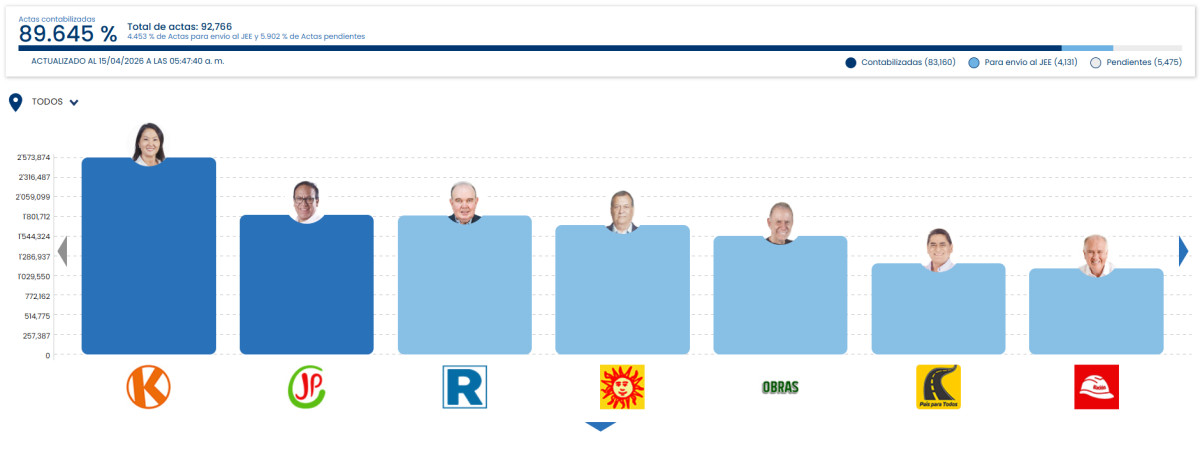 04/15/2026. Ya la hija de Fujimori lo ha vivido 2 veces; gana la primera vuelta, y el segundo candidato es de izquierda, se da la votación de segunda vuelta y toda la izquierda se une y suma mas votos que la derecha.